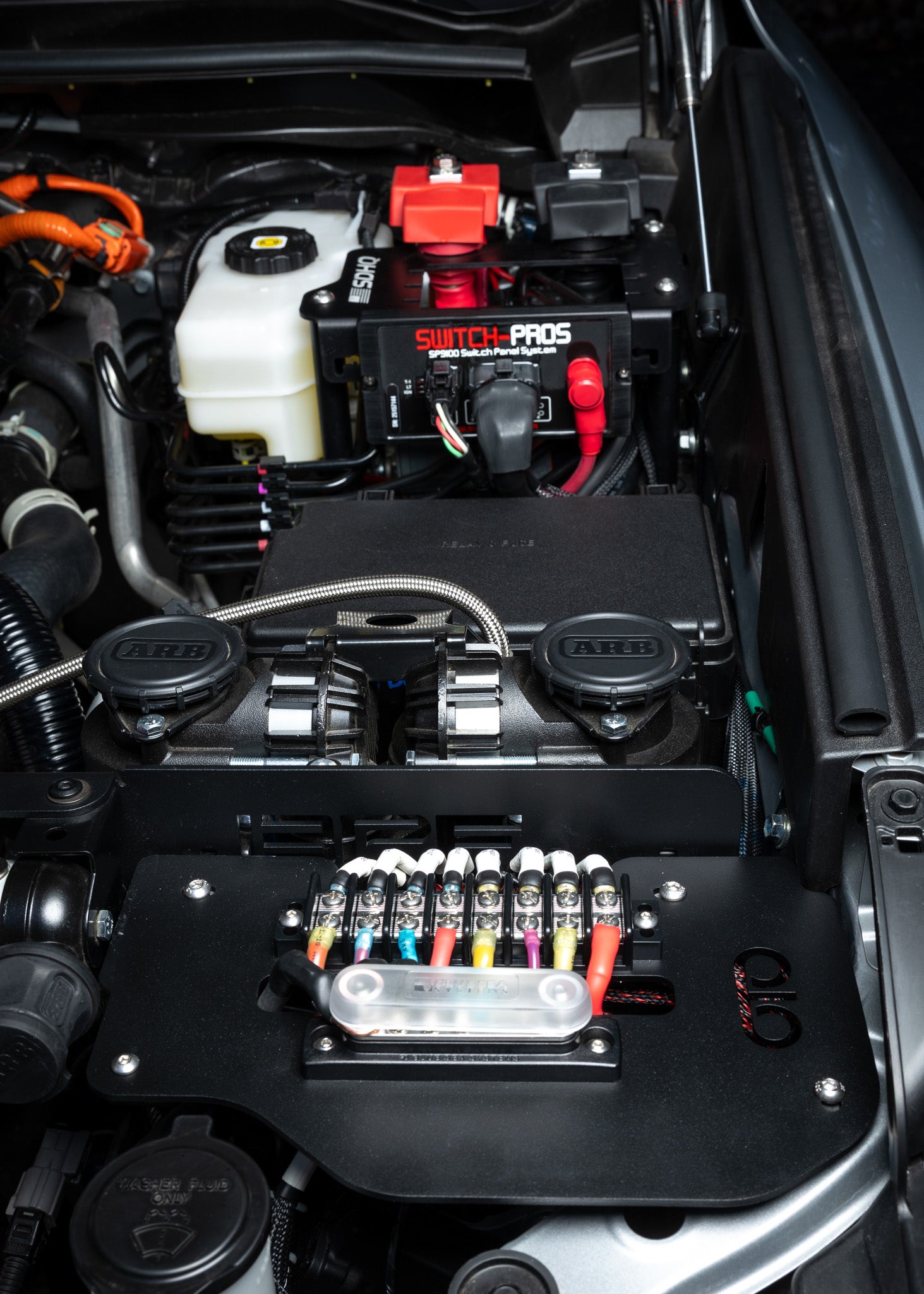 Suspension lift, beadlock conversion, lighting system, onboard air, communications, and expedition equipment integration.